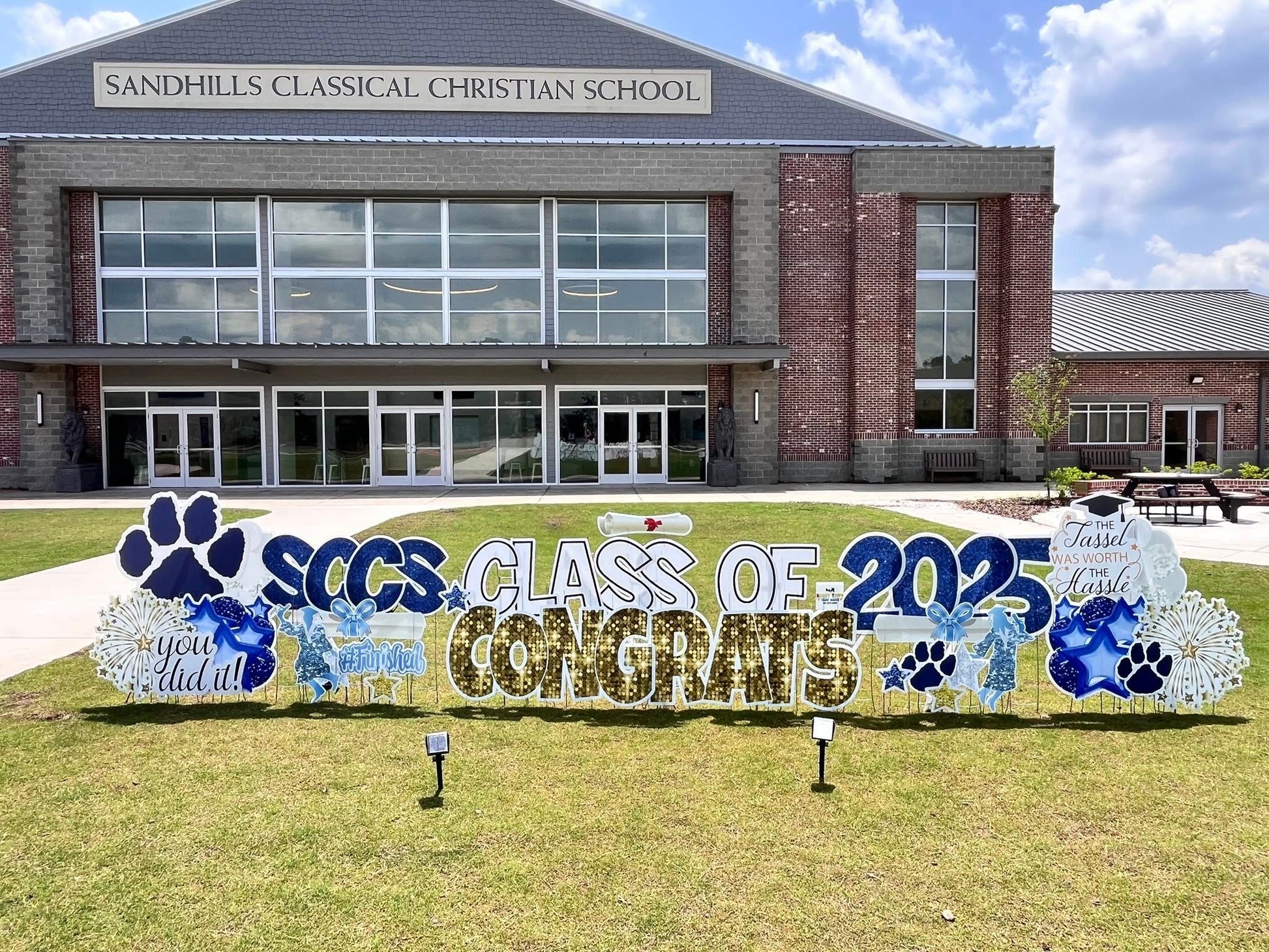 - Name, class year, “Congrats Grad,” cap, diploma, and school colors