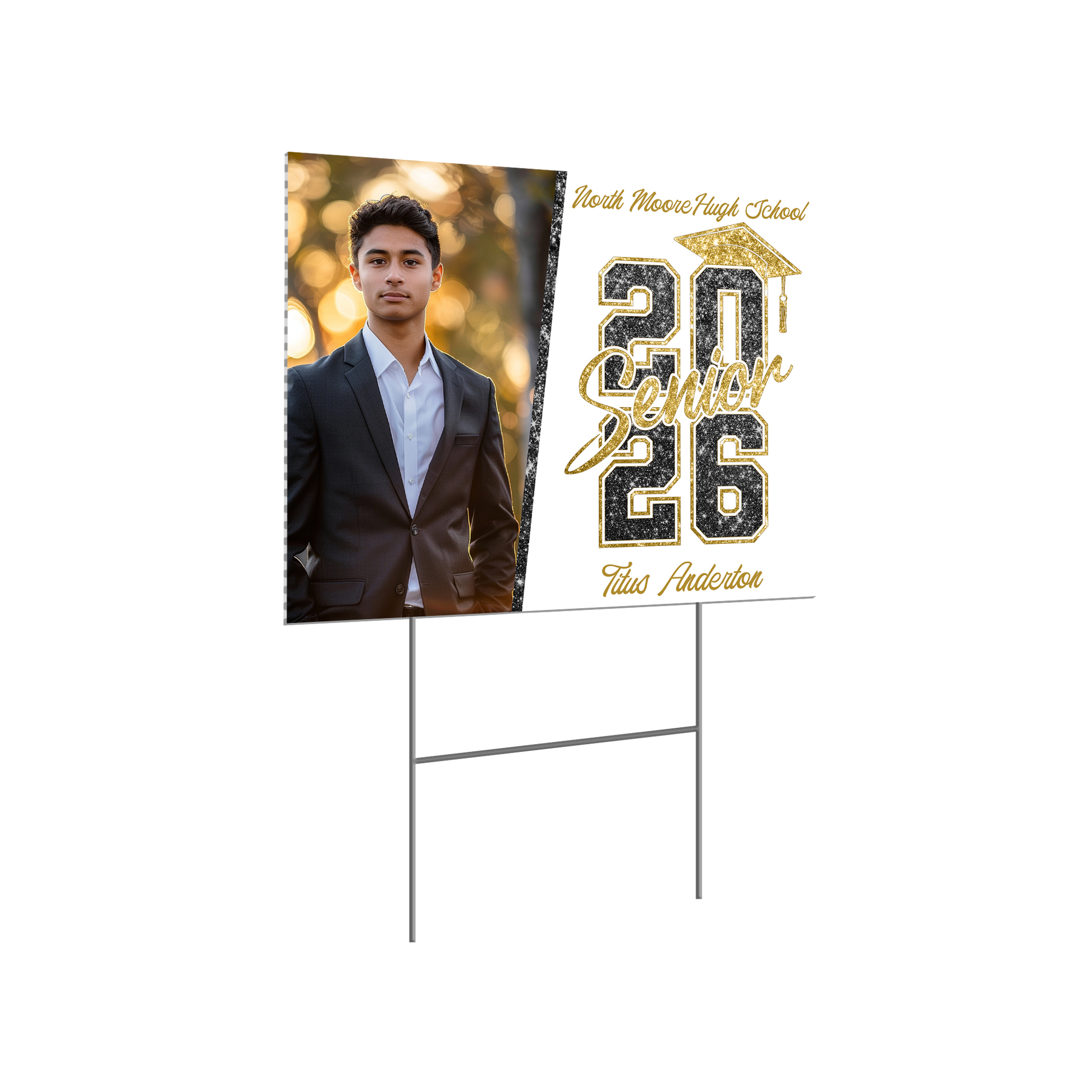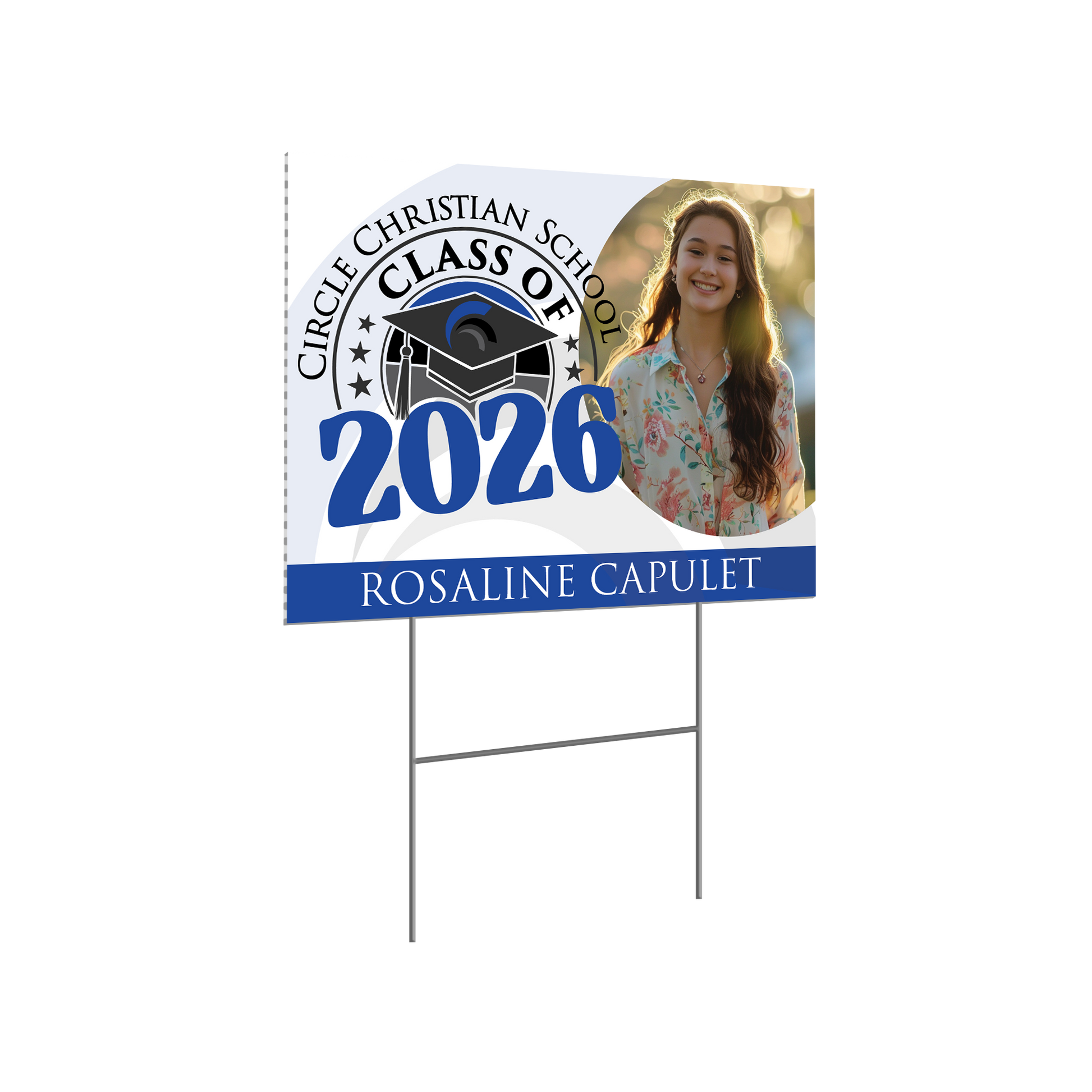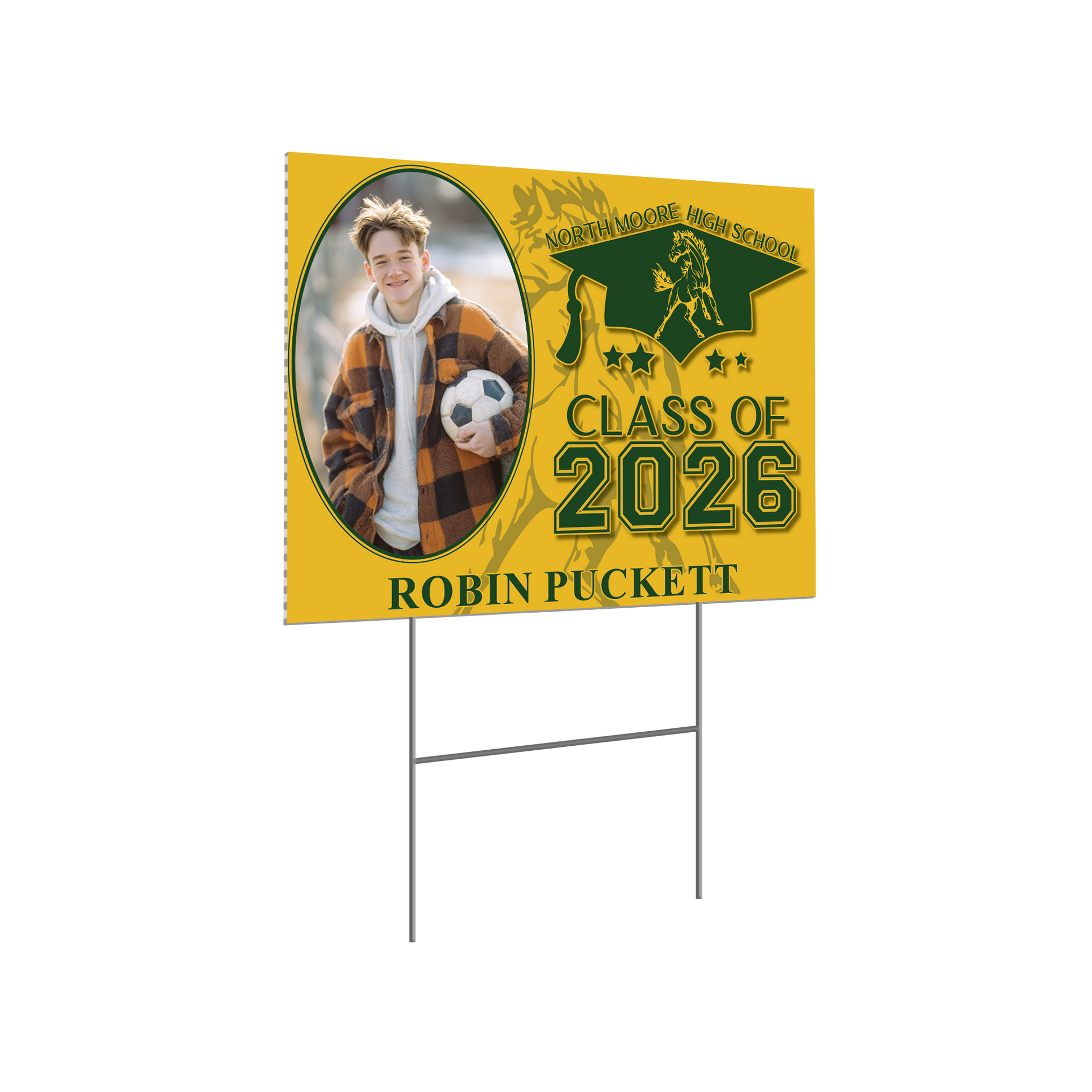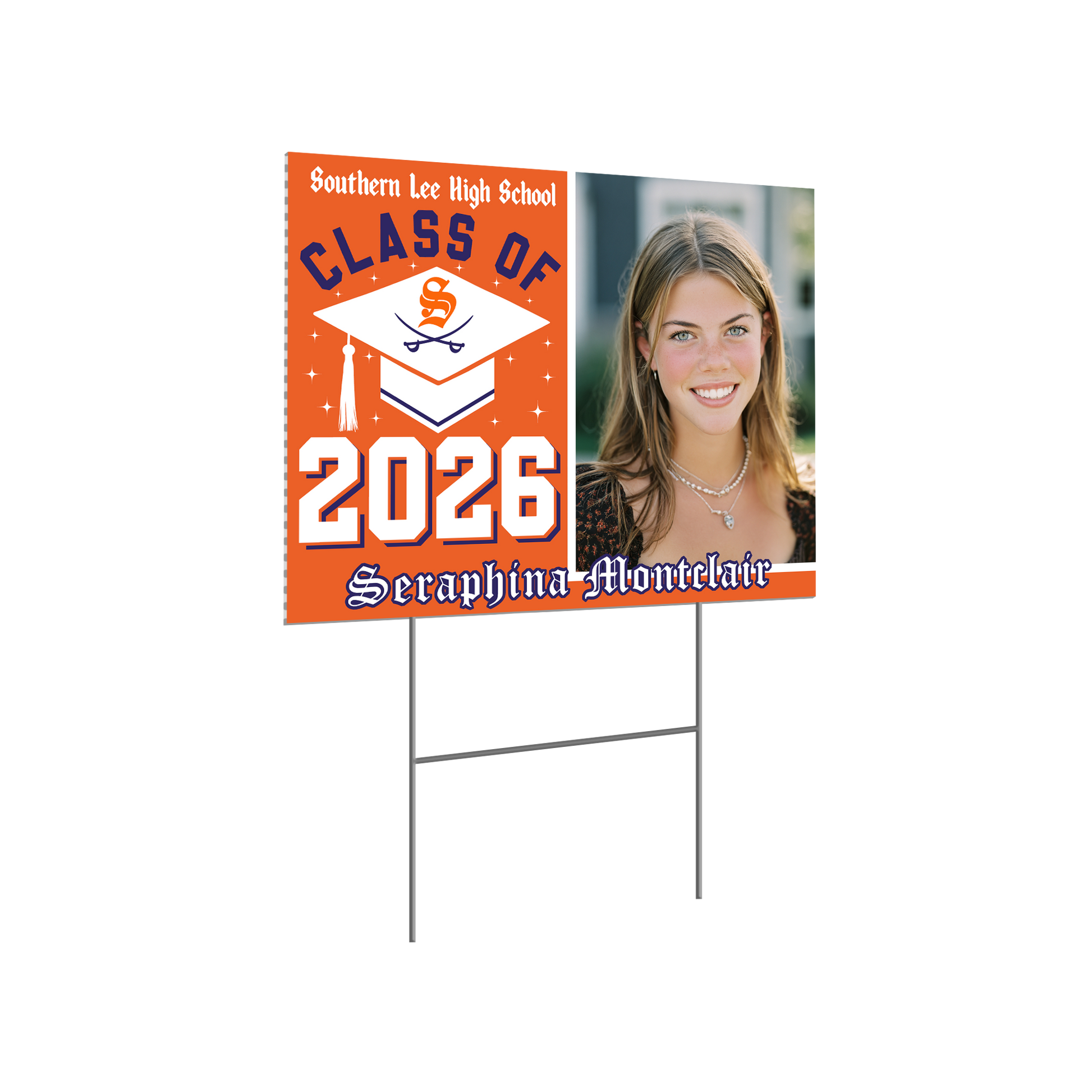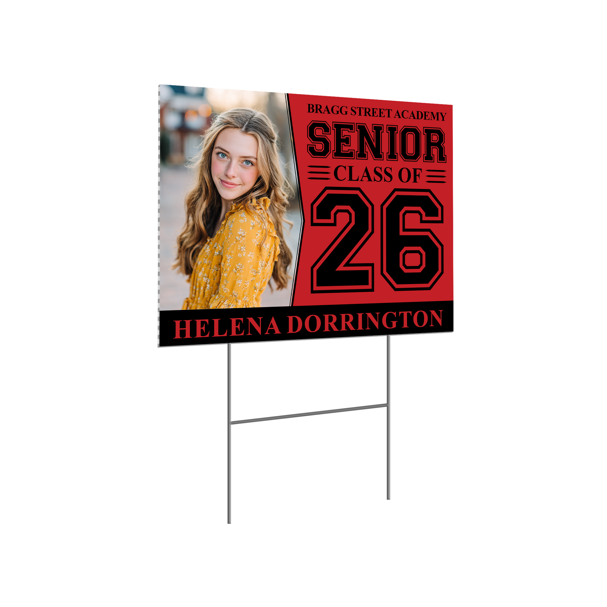 Honor your high school graduate with a personalized yard sign featuring their name and school colors. This is their moment. Let’s help it shine.