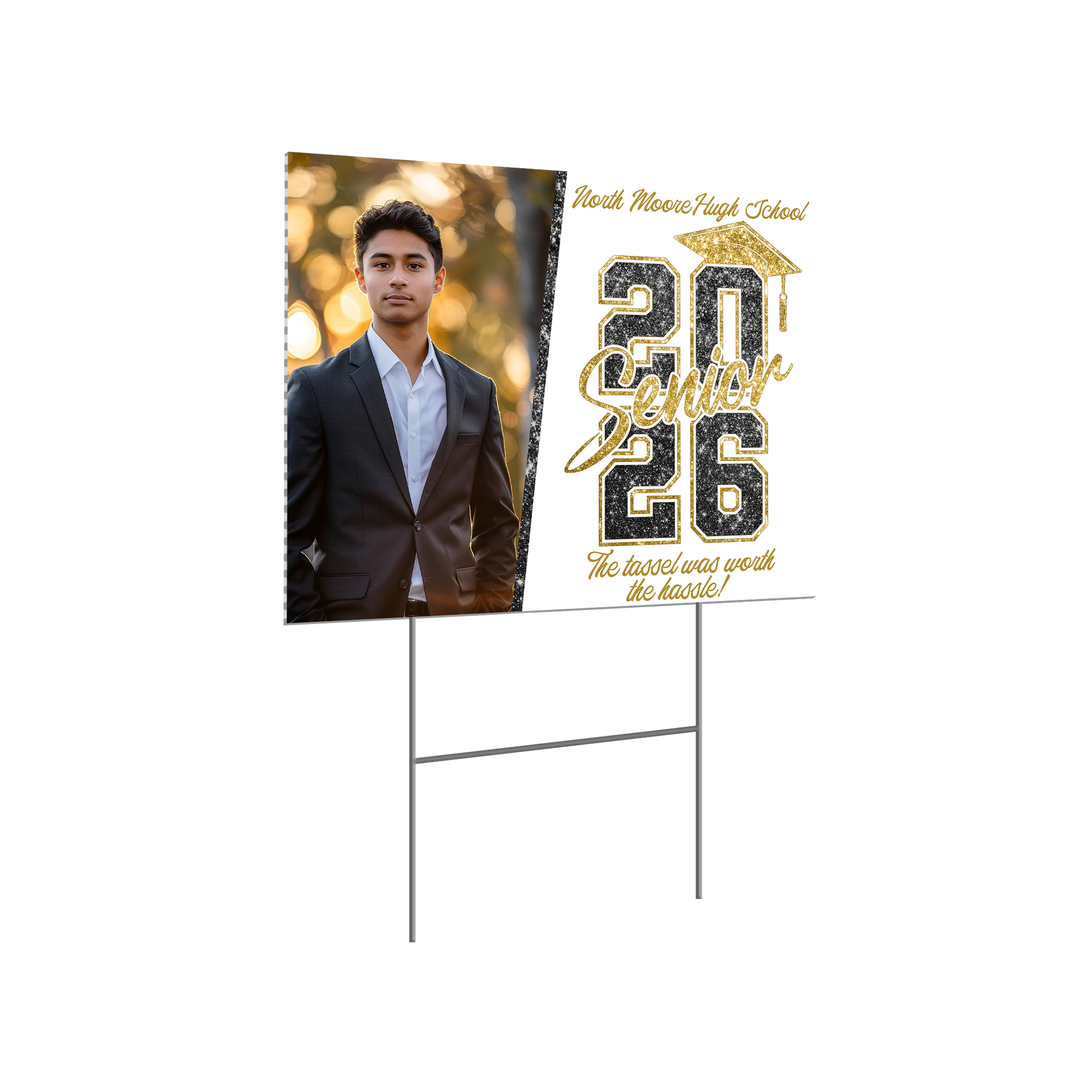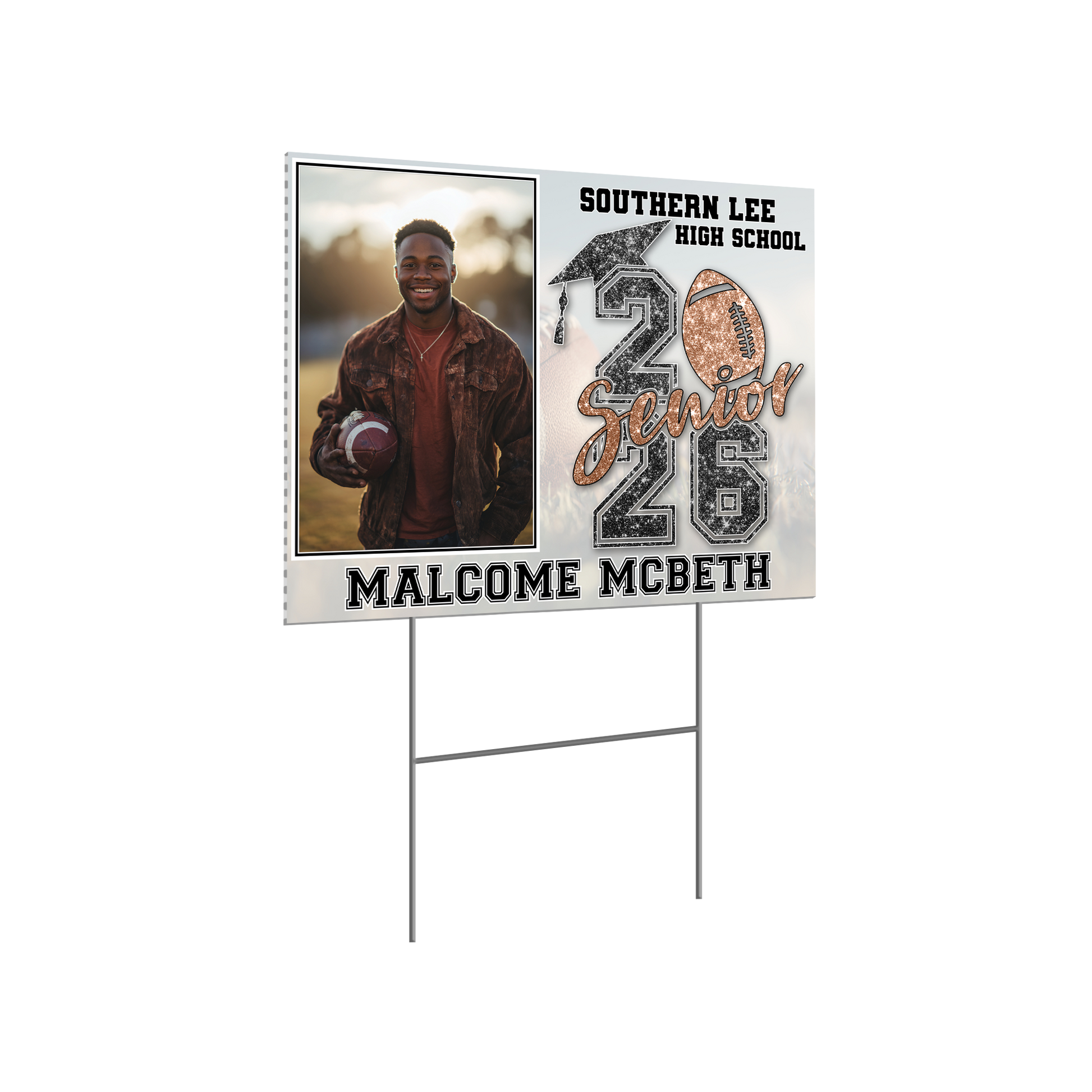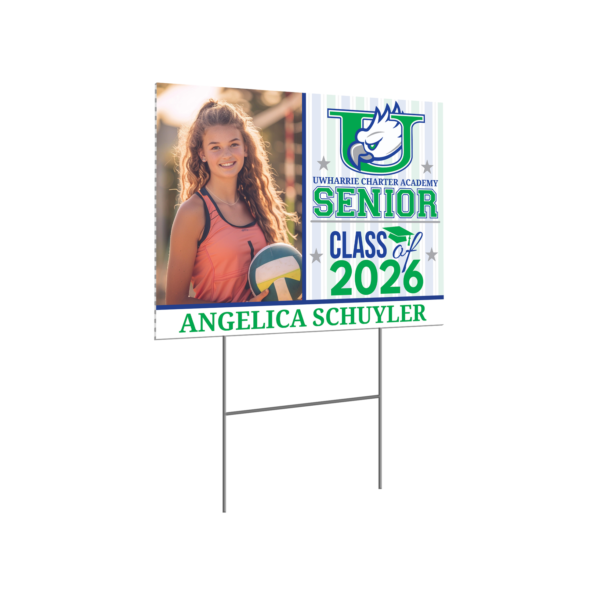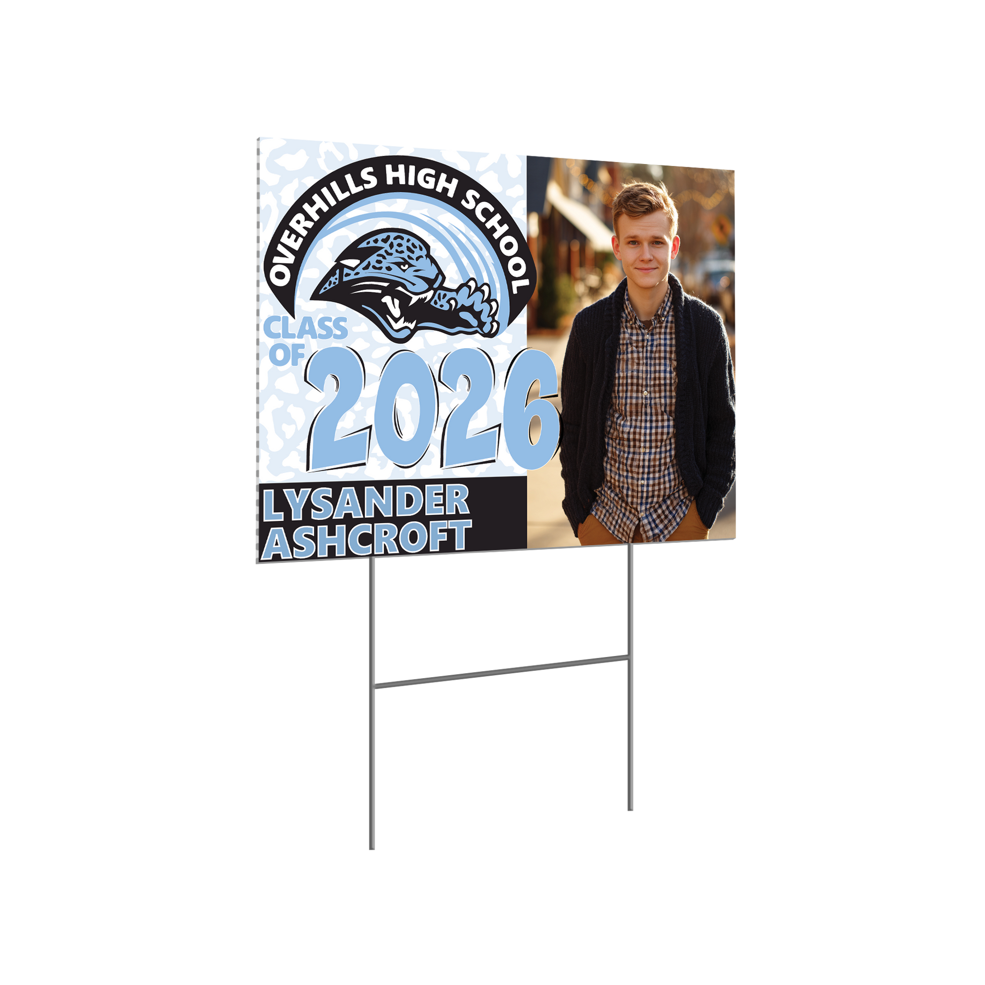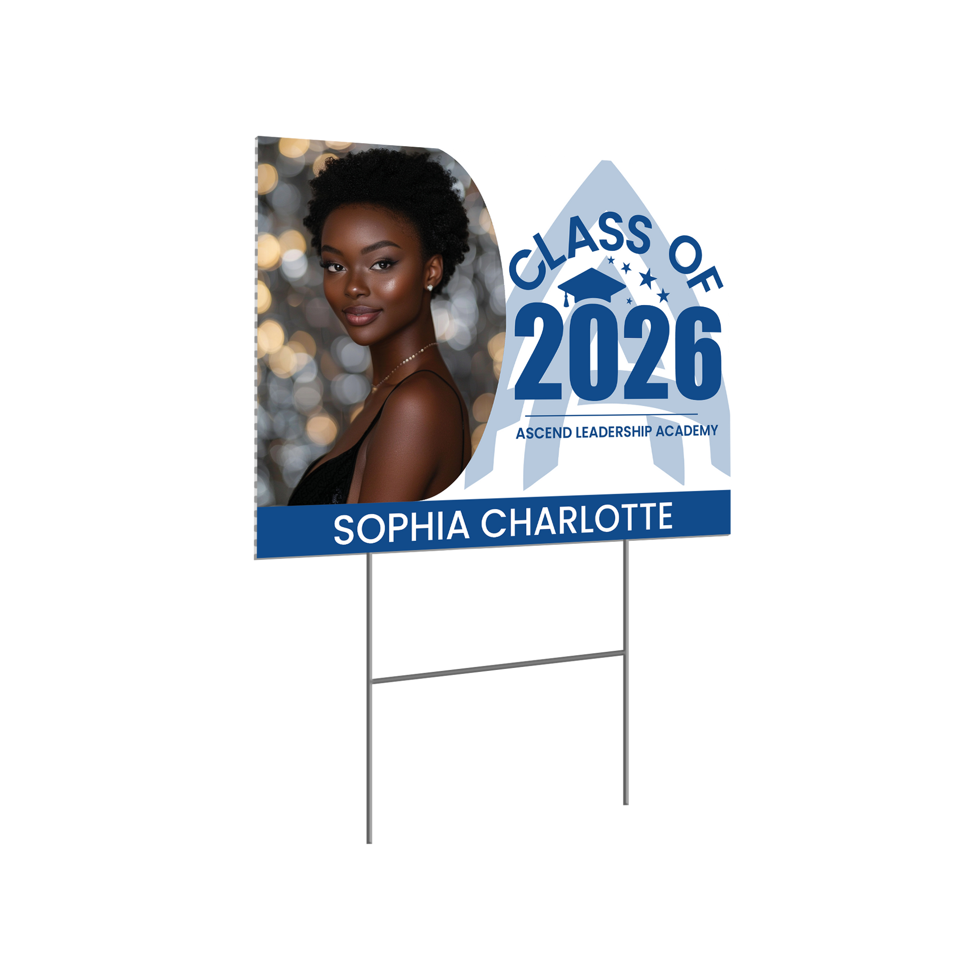 Honor your high school graduate with a personalized yard sign featuring their name and school colors. This is their moment. Let’s help it shine.